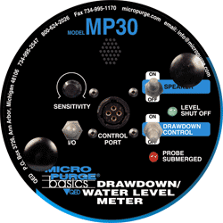 Drawdown control is now automatic with new low-flow water level meter. The MP30 (right) links to the MP10 or MP15 basics Controllers to provide continuous control of well level during low-flow purging and sampling. If the preset maximum drawdown level is reached, the MP30 signals the controller to put pumping on standby mode until the well level recovers.